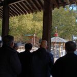 また全国に一宮制が確立していくとともに、当宮も肥前一宮と称されるようになり、南北朝の時代になると当宮の西に千栗城が築かれ、戦国時代には神域もたびたび戦乱に巻き込まれ社殿も幾度か焼失しましたが、天正十一年(1583年)龍造寺政家がこれを再興、鍋島の代になると藩祖鍋島直茂は慶長三年(1598年)に社領二百石を寄進、また神社表坂下に現存する石造りの肥前鳥居(町重要文化財)を慶長十四年(1609年)に奉納、以後明治維新に至るまで鍋島家累代の尊崇を享けています。